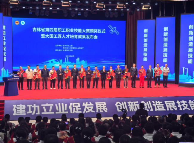 2025年11月16日,吉林省第四屆職工職業(yè)技能大賽頒獎儀式暨大國工匠人才培育成果發(fā)布會在長春科技學院隆重舉行。本屆大賽由吉林省總工會、省人力資源和社會保障廳聯合主辦,以“建功立業(yè)促發(fā)展、創(chuàng)新創(chuàng)造展技能”為主題,設置無人機裝調檢修、5G技術創(chuàng)新、人參鑒別加工等40個賽項。經過歷時6個月、初賽、復賽與決賽三輪激烈比拼,一批扎根一線、技藝精湛的優(yōu)秀職工脫穎而出,最終40名選手分獲各賽項冠軍。